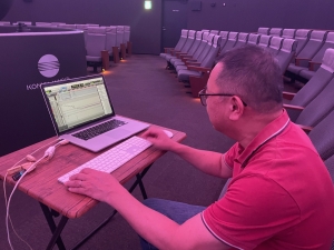 コスモプラネタリウム渋谷では、解説員が番組企画をし、シナリオ制作や絵コンテ、BGM選曲などをしますが、それを素晴らしい映像と音楽、演出をつけるのは、それぞれのプロフェッショナルのみなさんです。