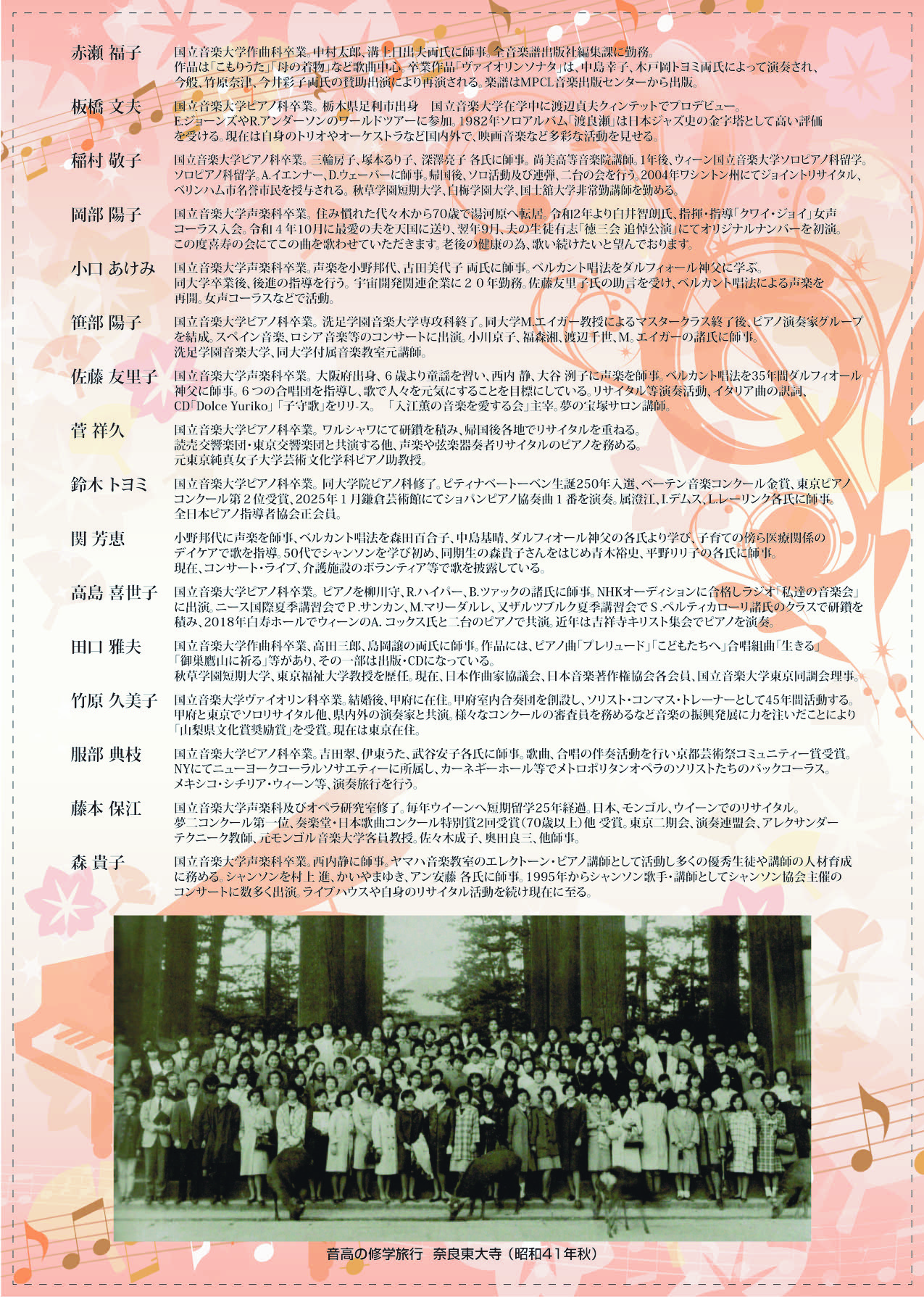 国立音楽大学附属音楽高等学校第18回生(昭和42年卒)による