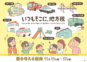 小学生の「税に関する書写」の優秀作品、中学生の「税についての作文」の優秀作品、「税の標語」及び「税に関する絵はがきコンクール」の優秀作品の展示です。