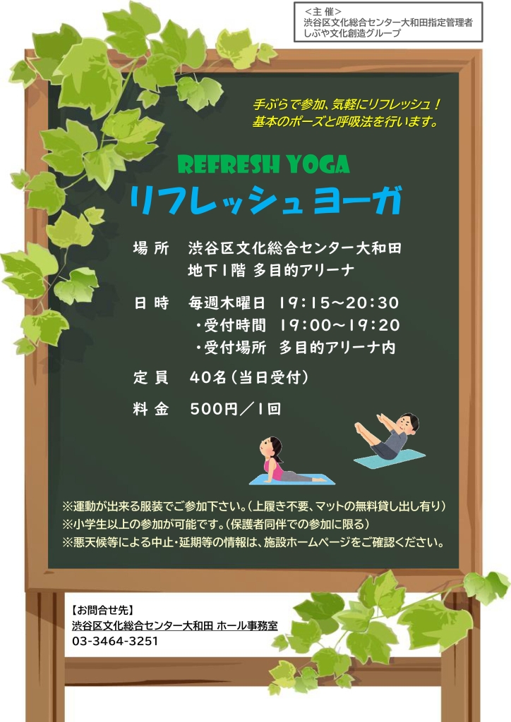 リフレッシュヨーガ【毎週木曜日 開催中】 ※2/5開催中止(1/21更新)